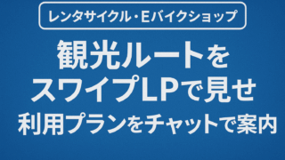 レンタサイクル・Eバイクショップは観光ルートをスワイプLPで見せ利用プランをチャットで案内