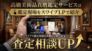 高級美術品真贋鑑定サービスは鑑定現場をスワイプLPで紹介査定相談をチャットで案内