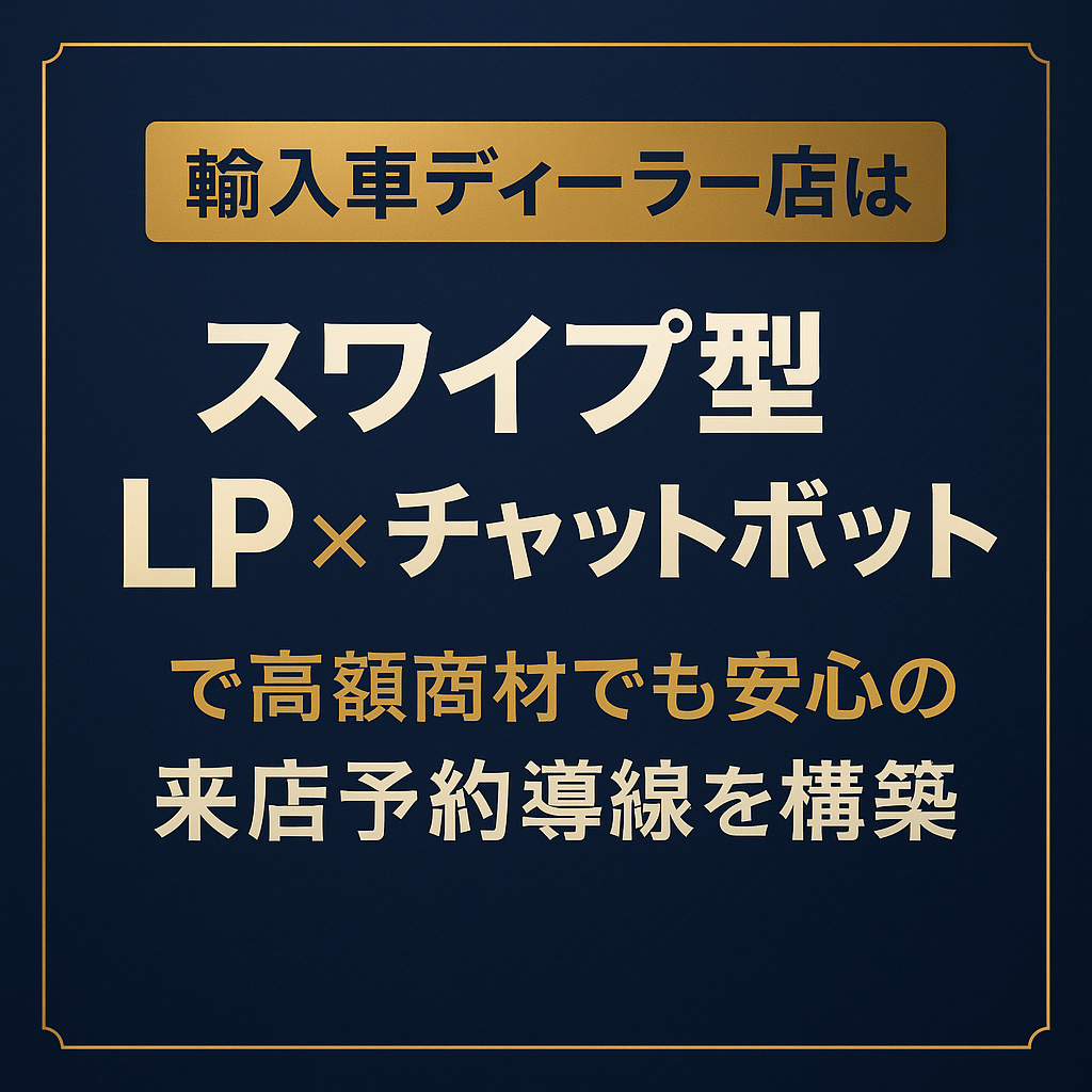 その、未来の、ディーラーのかたちを、創り出す、「スワイプLP」と「AIチャットボット」という、最強の、組み合わせについて、これから、じっくりと、そして、あなたの、ブランドへの、誇りに、心からの、敬意を込めて、お話ししていきましょう。