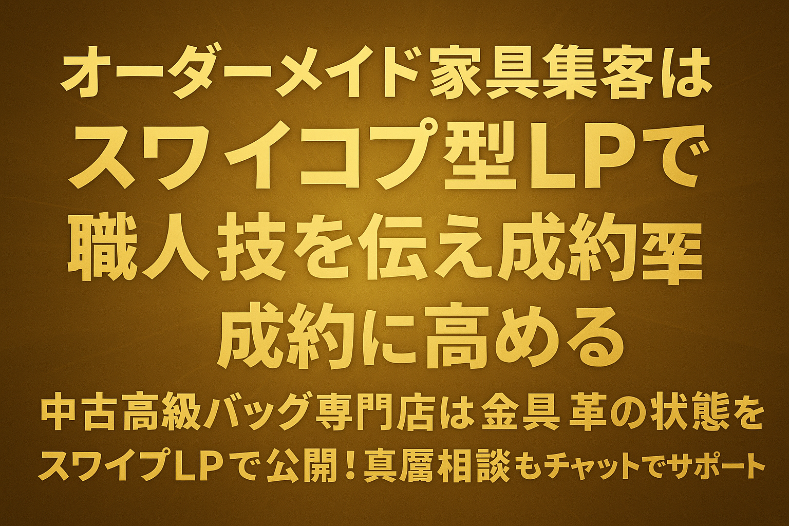 中古高級バッグの集客は、単なる情報提供ではなく、お客様の心に「安心と信頼」を描くことが大切です。その物語を伝えるための最適なツールが、スマートフォンに特化した「スワイプ型LP」です。