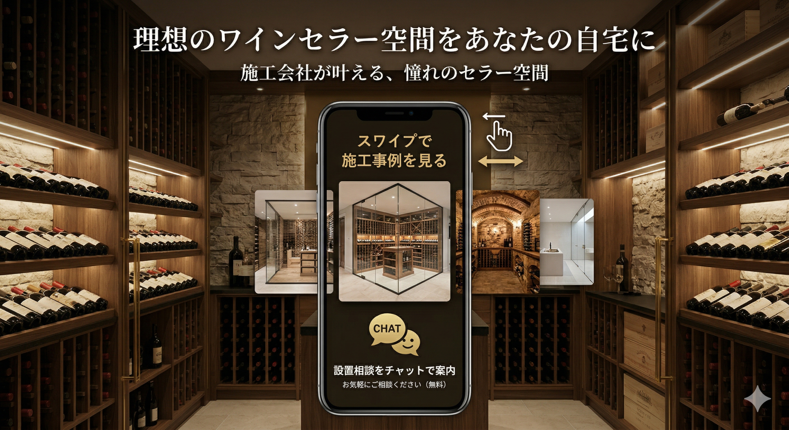 スワイプ型LPでセラー空間を「体験させる」仕組みと、チャットで気軽に相談できる窓口を組み合わせることで、このハードルを一気に下げることができます。この記事では、ワインセラー施工会社が問い合わせと設置相談を増やすための設計の考え方を具体的に解説します。