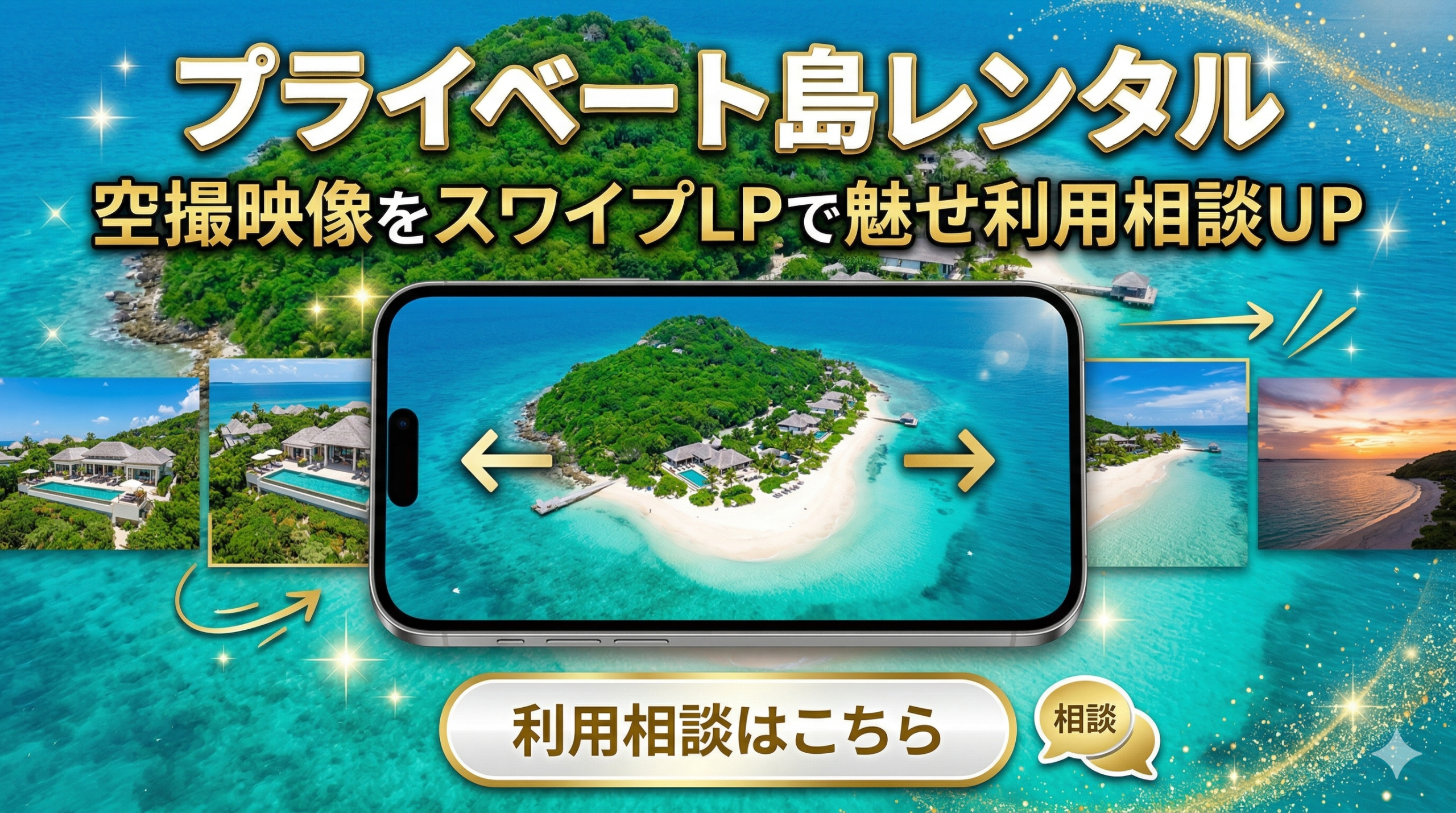 この記事では、プライベート島レンタルを提供する事業者が、スワイプ型LPと空撮映像・チャット相談を活用して問い合わせと利用相談を増やすための設計の考え方を解説します。