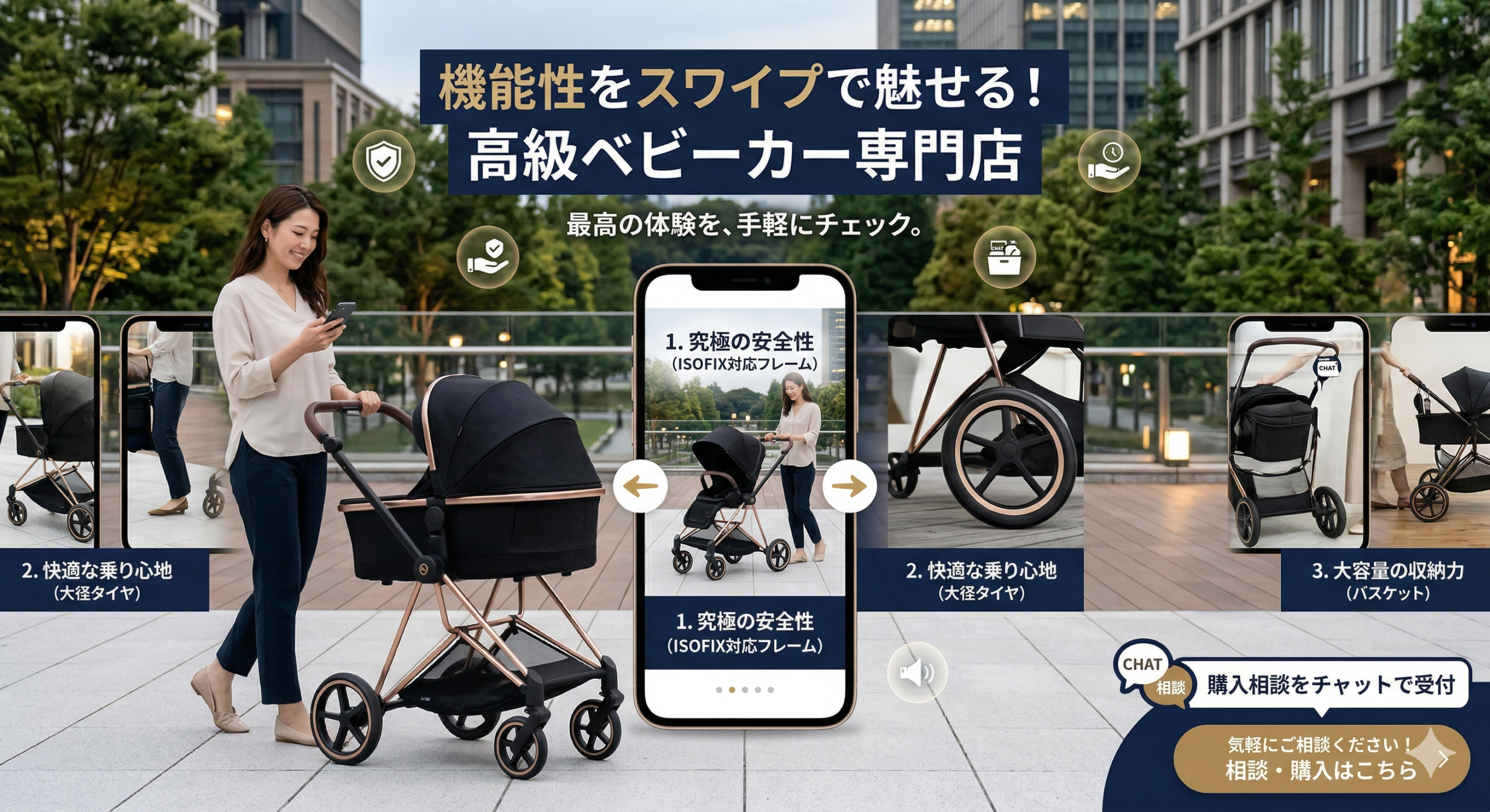 高級ベビーカー専門店は機能性をスワイプLPで魅せ購入相談をチャットで受付