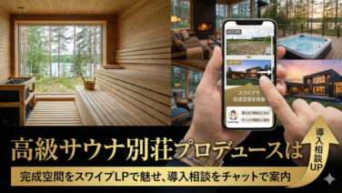 カテゴリ01 高級サウナ別荘プロデュースは完成空間をスワイプLPで魅せ導入相談をチャットで案内